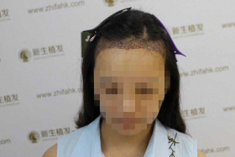 上图是手术之后的第七天,血痂脱落的差不多了,生出了好多小发茬。