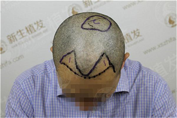 阮先生来到新生医院,做了毛囊检测后,医生决定采用TDDP毛发种植体系种植2700毛囊单位,对额头精细种植和头顶头旋处加密种植。