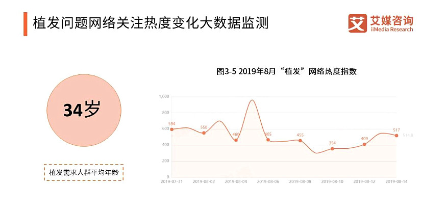 2019年,“植发”这一关键词的网络传播热度始终保持在高位,平均指数在500以上。正是中国脱发群体的庞大数量及植发需求带动了植发行业市场规模快速增长。