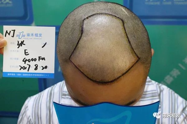 2017年8月20日,南京雍禾采用FUE LATTICE为张先生种植4400单位,按毛囊单位含头发根数来说,单根头发的毛囊单位1650,多根头发的毛囊单位2750;本来术前预估种植4000单位,结果多取种400单位,多种植了原计划的十分之一呢,这个比例很大的,是一种“加固版”的植发了,就是说要千方百计不再让头皮一点儿裸露。术后,张先生还在医生的建议下使用了米诺地尔,这对于保持原有头发不再脱落有重要作用。