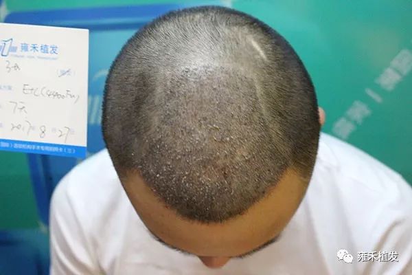 这足以说明脱发面积之大,并且不是一般大,而是特别大,要不然不会超过4000的种植量。但是,你平时看他吧,脱发并不严重,头顶裸露的头皮微乎其微,说来他做了最大程度的伪装,将周围头发留长然后盘着梳过来覆盖脱发区,你将这些覆盖的头发揭起,这才暴露真的脱发面,头顶三分之二面积裸露头皮,绝对的“大脱”。