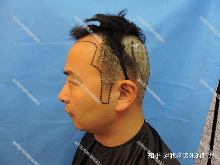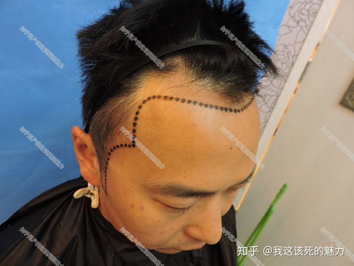 整体就是这么一个样子,主要就是发际线忒高,其他地方还好,头顶发旋跟前有些稀疏,规划了一部分加密,然后头发啥的一剃,手术走起~