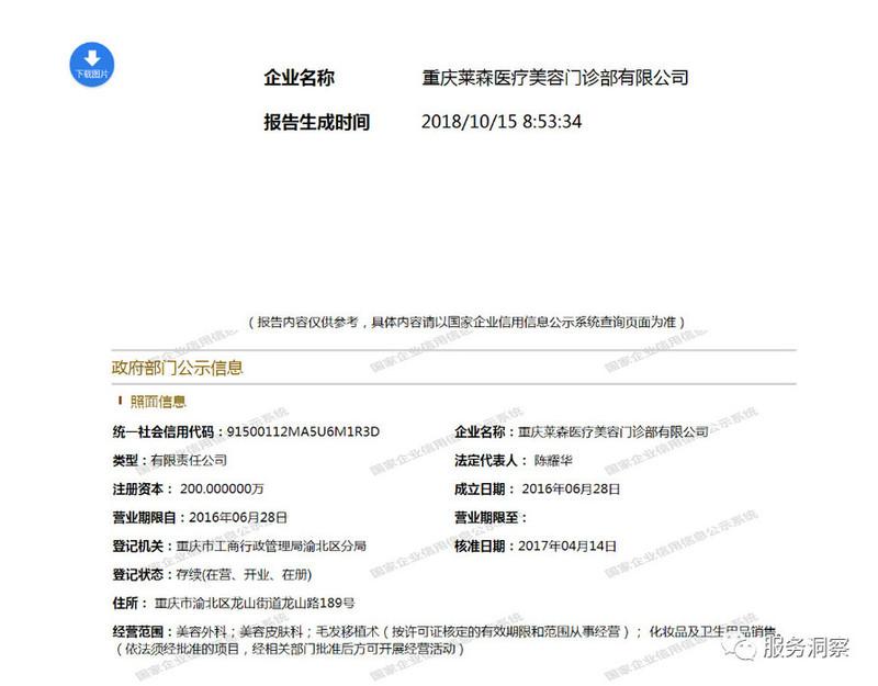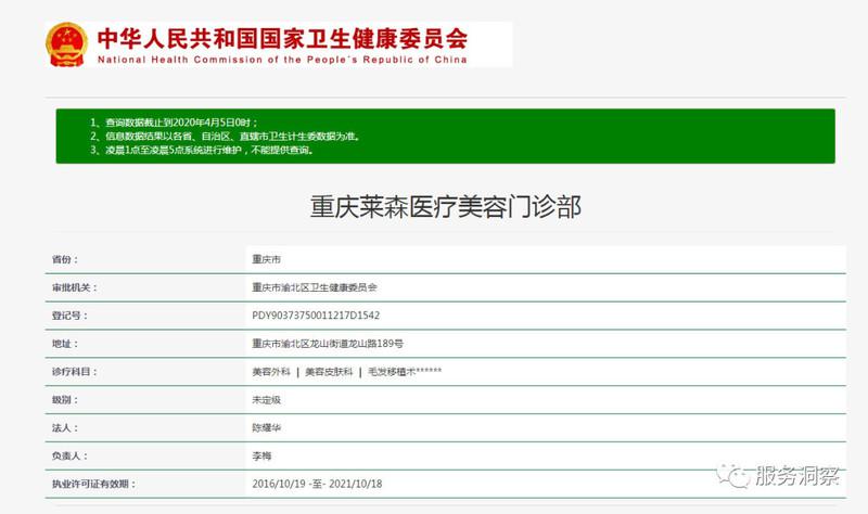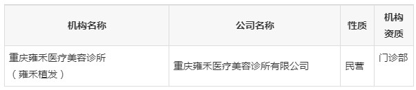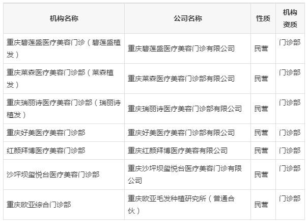 重庆民营植发机构 工商备案和卫健委备案(部分)