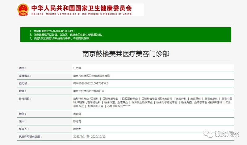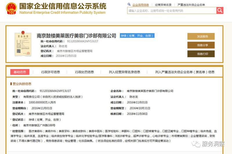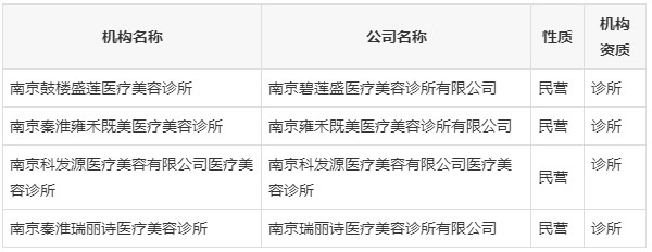 南京民营植发机构 工商备案和卫健委备案(部分)