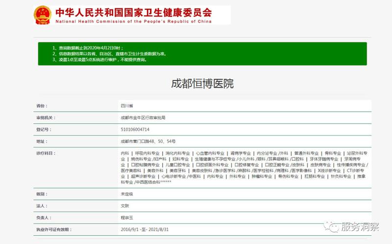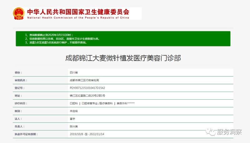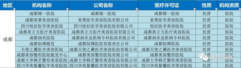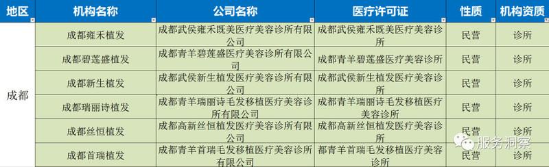 成都民营植发机构 工商备案和卫健委备案(部分)