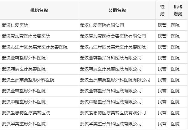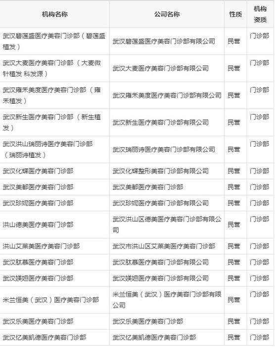 武汉民营植发机构 工商备案和卫健委备案(部分)