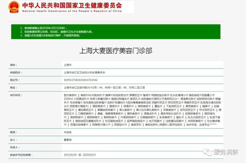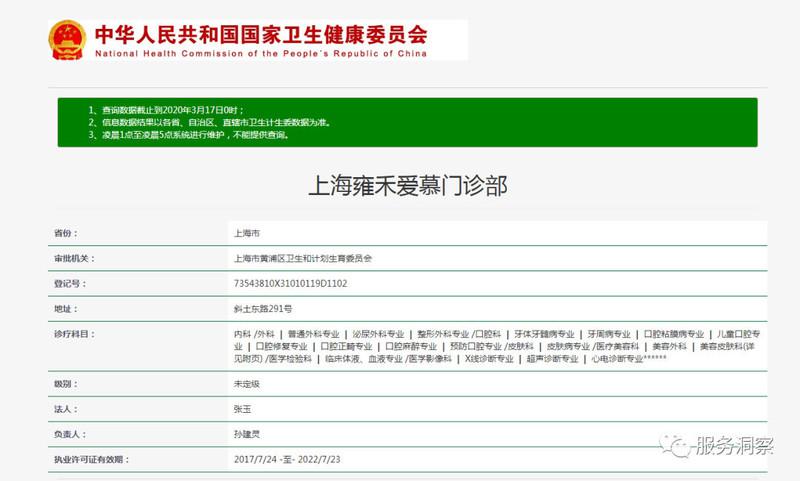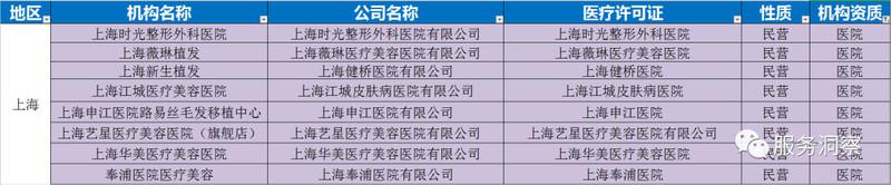 上海民营植发机构 工商备案和卫健委备案(部分)
