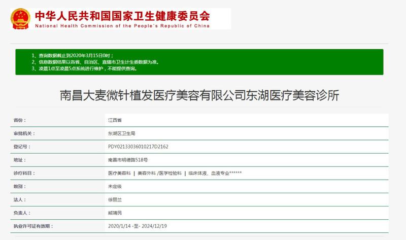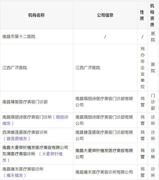 南昌民营植发机构工商备案和卫健委备案(部分),更多正规植发机构备案,请咨询客服