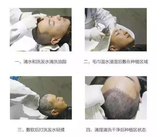 用清水和洗发水在种植区揉出泡沫,再用指腹或无菌纱布轻轻揉搓血痂部位,使其一点点慢慢被清理掉。