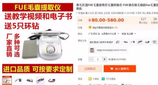我甚至可以在淘宝上购买植发仪器,然后自己给自己植发。还有配套的教学和培训视频哦!!