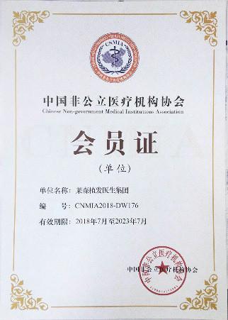 莱森植发医生集团-中国非公立医疗机构协会证书