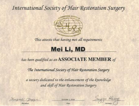 系中国大陆地区首位美国植发外科委员会ABHRS认证医师,同时是国际植发协会ISHRS会员(大陆仅数人)、亚洲毛发修复外科协会AAHRS会员、中国整形美容协会毛发医学分会会员。2017年、2018年,先后代表莱森植发出席了国际植发协会奥兰多手术研讨会(OLSW)和世界手术研讨会(WLSW),是大陆医疗机构、医师首次受邀参加该系列会议。