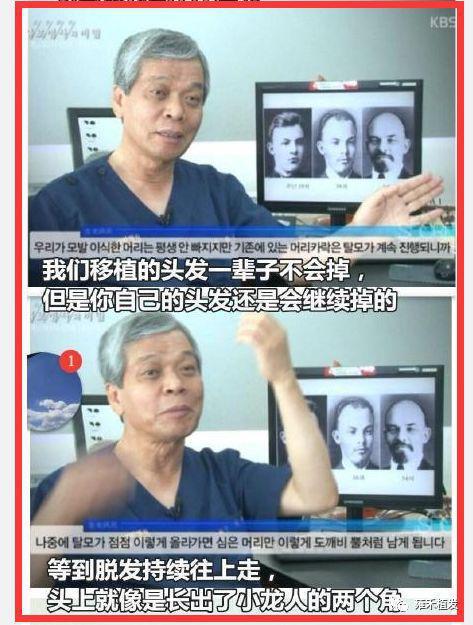 第二,韩国庆北大学毛发移植中心负责人说的大体对,也就是个别表述未必对,或者是他说的全对,但这边翻译的人有失误。单看翻译字幕,那专家说植发种的头发一辈子不掉,但是自己的头发还会掉,就是说原有的头发还会掉,这样以后头顶形象又不雅观——没错,种上的头发一辈子不掉,但是原有头发可能掉,也可能永久不掉,这是一种或然关系,而不是必然关系,而翻译过来的字幕说的是必然关系,意思是原有头发一定会掉的。真相是,植发后原有头发一部分人会掉的,一部人是不会掉的,好的头发形象持久的。不要说中国,就是韩国日本,有大量发友植发20年了,头发形象依然完美,就是原有头发没有再掉嘛。