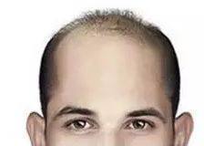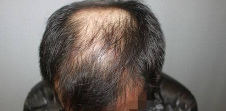 前额部位基本脱落,头顶部位向后扩大趋势更加明显,中间仅隔离狭窄的毛发带,毛发带的毛发都是不健康的,细软的毛发,且很容易出现脱落,看上去显得年老。