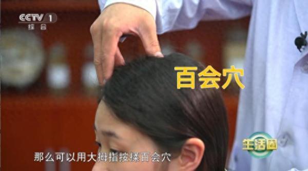 按揉方法:用大拇指按揉百会穴,顺时针36下,逆时针36下,百会穴是诸经之会,通过点按百会穴达到激发经气,养发生发的作用。
