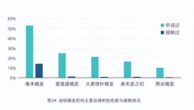 《蓝皮书》数据显示,53%的消费者听说过雍禾植发,25%的消费者听说过碧莲盛,21%的消费者听说过大麦微针。