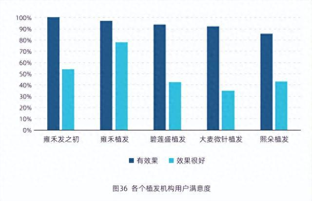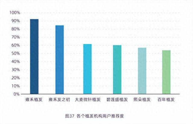 从用户总体满意度来看,超过8成接受过植发医疗的消费者表示效果良好,选择雍禾的用户(包括雍禾植发和雍禾发之初)满意度位列第一,碧莲盛和大麦微针满意度紧随其后。雍禾植发用户的推荐度达到92%,雍禾发之初用户推荐度达到85%,远超行业平均水平。