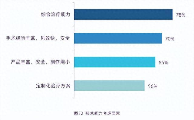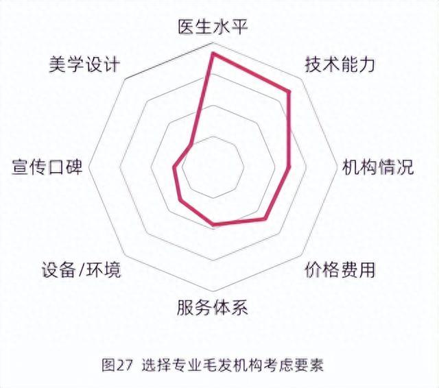 《蓝皮书》调研显示,消费者在选择专业毛发医疗机构时最关注的因素是医生水平,其次是机构的技术能力。