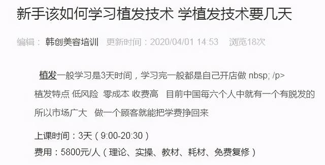 有培训机构打出3天掌握植发技术的广告,学费仅需5800元。令人瞠目结舌的同时,反映出行业供给需求缺口明显。