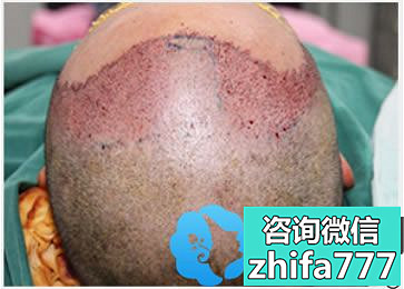 华美FUE精密智能植发是用毛囊提取机将受术者后枕部或颞部的毛囊提取出来,再经过分离培育,然后种植到需要种植毛发的部位,这是男子刚种植完毛囊的效果图片,按照术前的设计方案成功完成植发手术,只等恢复效果了。