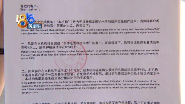 陈先生:“一点都不理想,跟之前比,我觉得好不了多少,一个失败的手术,他们帮我测算了一下,说成活率大概57%左右,意思就是说,保证95%成活率,95减去57,退我38%的费用,那肯定不合理。”