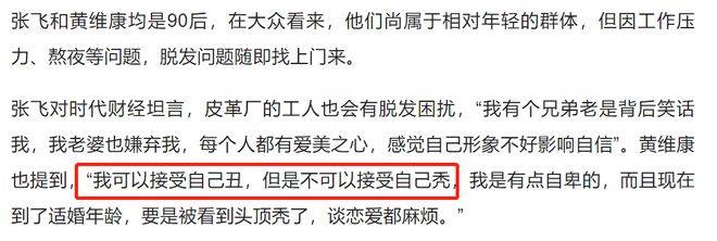 “我可以接受自己丑,但是不可以接受自己秃,我是有点自卑的,而且现在到了适婚年龄,要是被看到头顶秃了,谈恋爱都麻烦。”