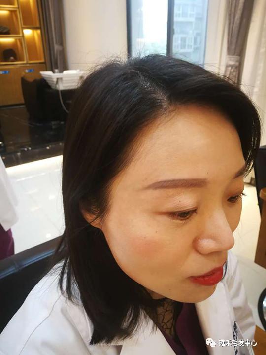 术后半年吧,张医生种植的发际线初显轮廓,额头变小,脸面变小,留了好久的刘海终于可以不梳了,对一个长期梳刘海的人来说,现在敢撩起头发好比重见天日。再往后,她的植发效果进一步显现,发型衬托脸型变化,整个人的气质也衬托出来了,看着更是亭亭玉立。