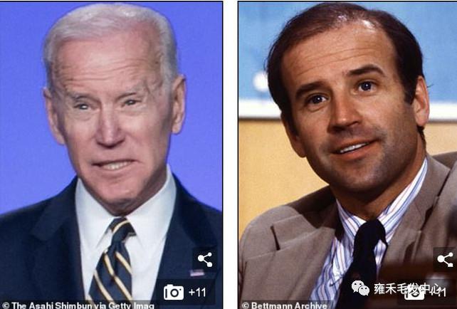 (再来一组拜登的对比图,前一张是现在的,发际完好,后一张是他年轻时的,发际后退。)