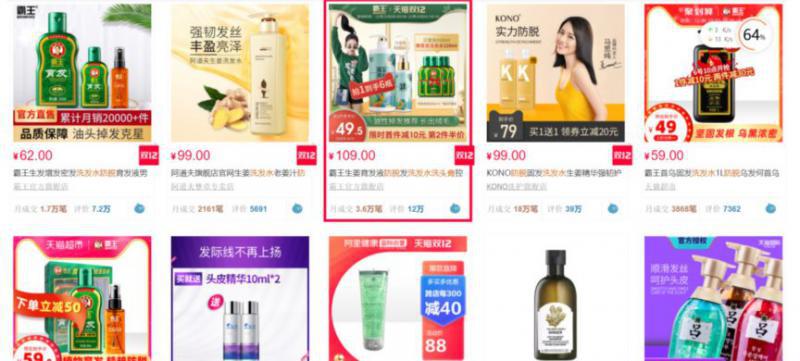 在淘宝平台上以“防脱发洗发水”为关键词进行搜索,燃财经发现,除霸王、章光101等知名防脱发国产品牌外,宝洁、欧莱雅、联合利华、资生堂等大型日化产品制造商,旗下品牌也瞄准防脱发市场并推出相关防脱发洗护产品。除此之外,也不乏如菲诗蔻一样的进口品牌,如ROY/吕、馥绿德雅、The body shop、KONO等。
