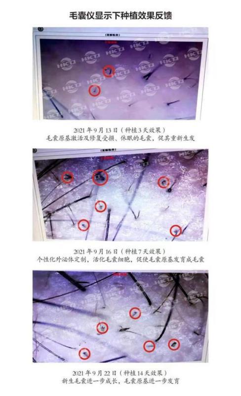 而在临床前的试验中,华科同济团队对裸鼠进行了种植研究。随后,在志愿者的临床试验结果中显示,在种植毛囊元基后,非病理性脱发再生成功率100%,毛囊检测显示种植部位有大量新生毛发。单次种植后毛发生长覆盖率30-60%,两次种植后毛发生长覆盖率60-80%,基本能够到达原生发的密度。目前,该技术已有50余例临床成功案例。