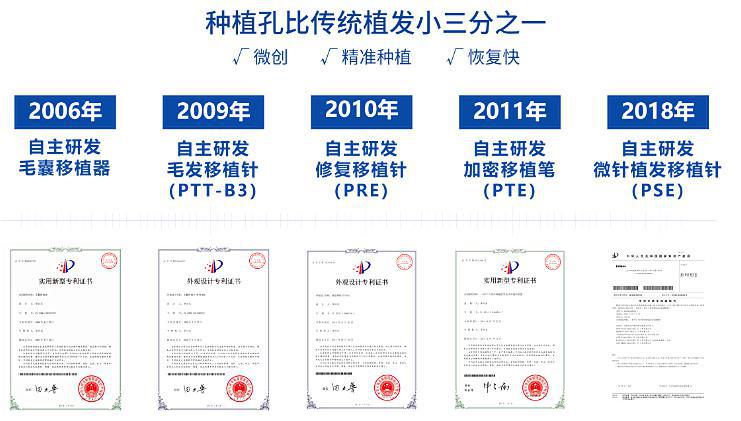 作为国内植发行业头部企业,大麦微针植发率先引进国际主流植发技术,经过14年的不断创新优化,不断革新改良微针植发技术,并取得相应的国家专利。