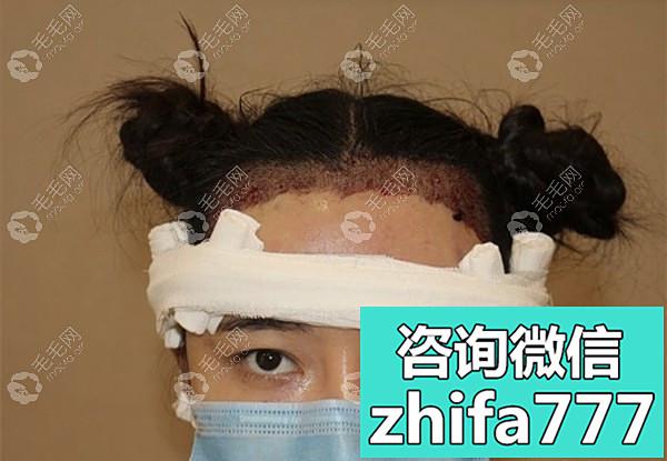 手术结束后能清晰看见我的发际线往前移了,虽然是裹着纱布,头皮上还有血痂,也阻止不了我激动的心啊!