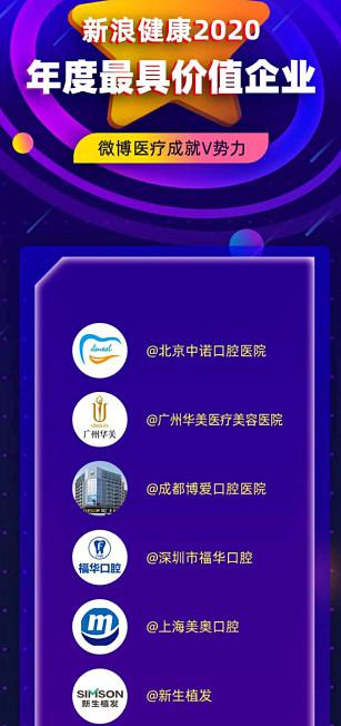 庆祝新生植发荣获新浪健康2020年年度最具价值企业