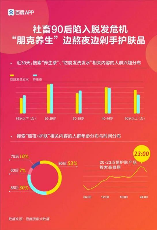 据百度发布的《百度618电商搜索大数据报告》显示,今年“618”期间,防脱类产品和养生类产品在“90后”群体中的搜索热度持续走高,领跑各年龄层。