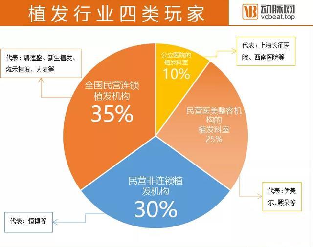 正是基于以上情况,获得资本助力的全国民营连锁植发机构开始发力,不断扩展市场,做大份额,并逐渐开始领跑行业。截止目前,碧莲盛已在北京、上海、广州、深圳、重庆等32个大城市开设专科植发医院;雍禾植发在全国20 余个省市开设了40余家直营连锁机构;新生植发在30多个城市成立了新生毛发种植基地,并与比利时、韩国、新加坡等国知名植发机构成立跨国战略联盟;大麦则在20城开设了分院。