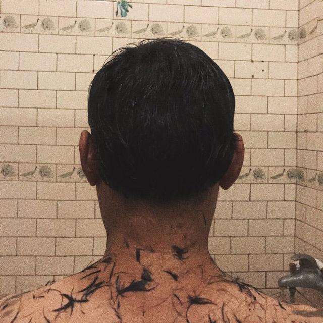 看来焦恩俊不是很满意这发型啊!我们来看看焦曼婷剪得这发型怎么样?乍一看这头发剪得又圆又齐,真有点功夫熊猫发型气质,讲真不是太好看吧!哈哈,而且这头发渣子都落在了焦恩俊的身上,很多网友看此说也不围个围脖啥的,看着都刺挠!大家看焦曼婷剪得这头发咋样啊?
