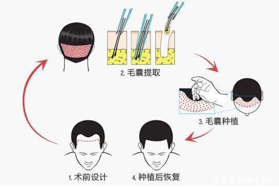 把分离出来的毛囊种植到脱发部位。先做小切口,然后用专用植发器械把毛囊按照一定的深度、密度和方向种植到真皮层里面,所以种植毛囊的效果好不好就与医生的技术相关了。
