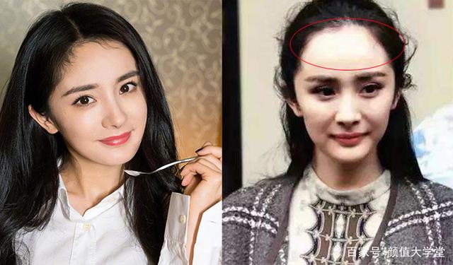 还有一种是遗传性脱发,比如杨幂,她的发际线比较高,就跟他父亲脱发有点关系,又经历了产后脱发,所以有段时间她的脑门特别高,后面通过妆容或者是植发变得很好看了。
