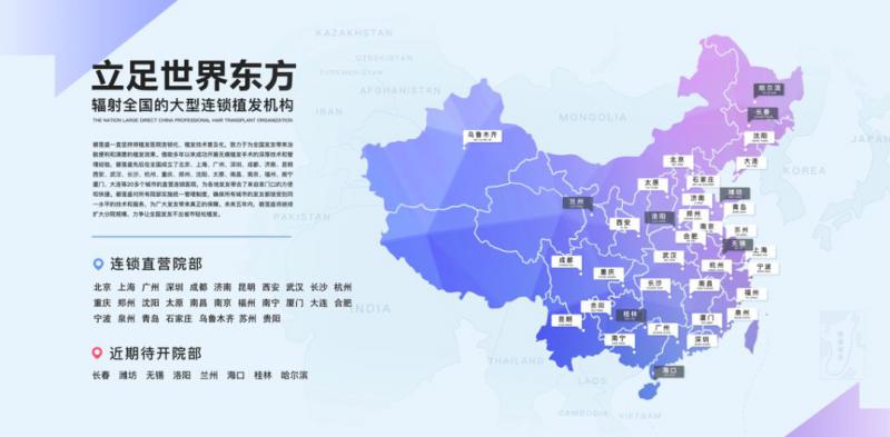让更多人享受到碧莲盛的贴心服务,一直是我们发展的重点。无论是沙海茫茫的新疆,还是大雪漫漫的东北,都有碧莲盛植发专家的足迹;在西南天府之下,在东南烟雨之中,碧莲盛植发分院驻立在祖国的大江南北,为五湖四海的发友提供专业高质的服务,广受赞誉。