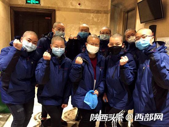 西部网讯(记者 王辉 李卓然 通讯员 李琳)2月8日,已经抵达武汉驻地的西安交大一附院东院支援武汉抗疫医疗队的9名女医护队员陆续剃光了一头秀发,只为防疫过关。