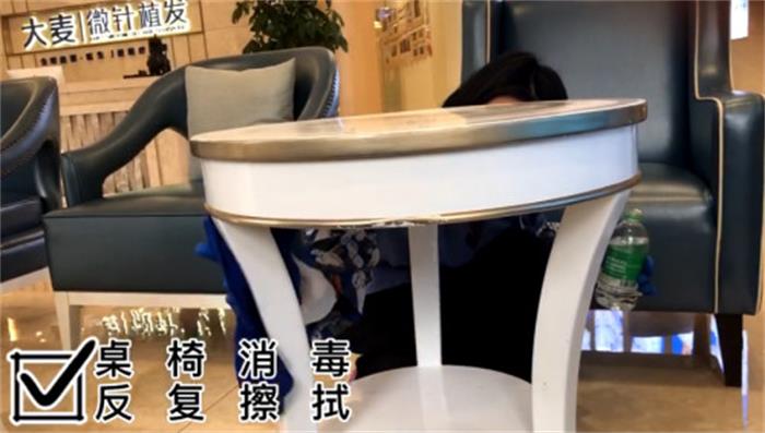 大麦微针植发院内,用75°酒精反复清洁台面、桌椅等细节处