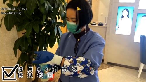 大麦微针植发院内,使用 84 消毒液反复清洁地面