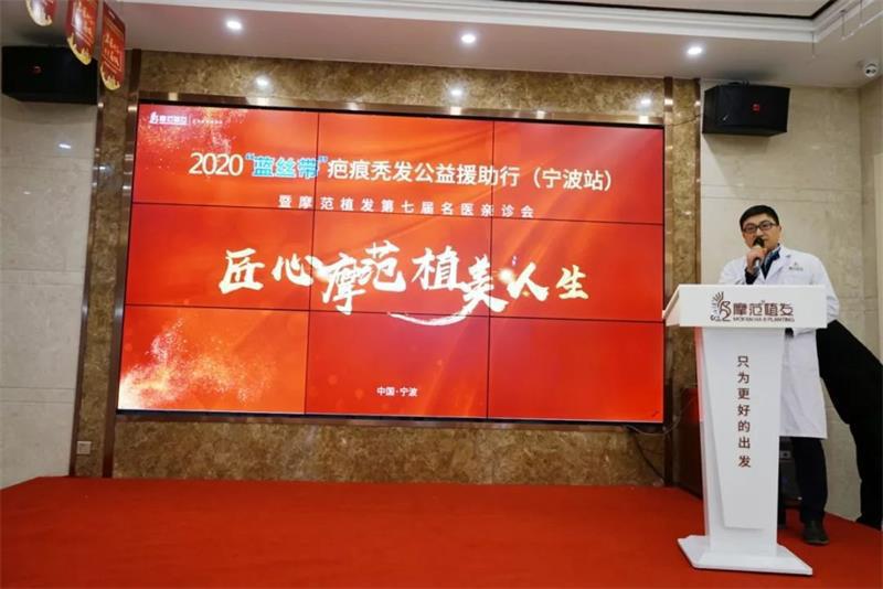 摩范植发医院举办了第七届“蓝丝带”疤痕秃发公益援助行(宁波站)全国毛发医学教授公益亲诊——宁波市李惠利医院东部院区主任蔡宝祥博士,为发友亲诊。