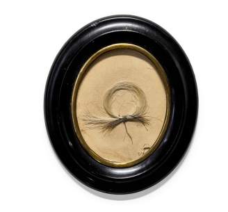 报道称,这缕头发用一根丝线固定着,装在一个19世纪的釉面椭圆形框架中。