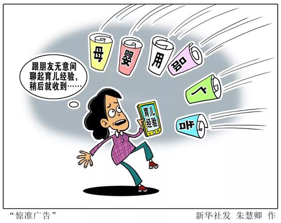 北京的庄女士向记者反映,她曾在某社交APP聊天群组围观宝妈们有关“抓周”的讨论,其中一位宝妈说要买婴儿印泥。当她切换到某购物APP时,赫然发现,婴儿印泥出现在了首页推荐上。“才几秒钟时间,我只是看了别人的聊天就被精准推送,太可怕了。”庄女士说。