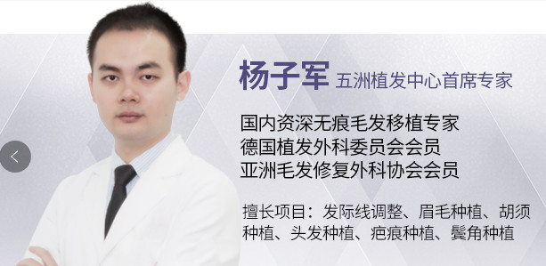 作为专业的毛发移植医生,杨子军倡导个性化毛发定制系统及舒心健康管理服务系统。通过私人化毛发检测定位、毛发健康数据分析,根据不同发友的毛囊状况采取安全适宜的治疗方案,使整个植发过程更加舒心!