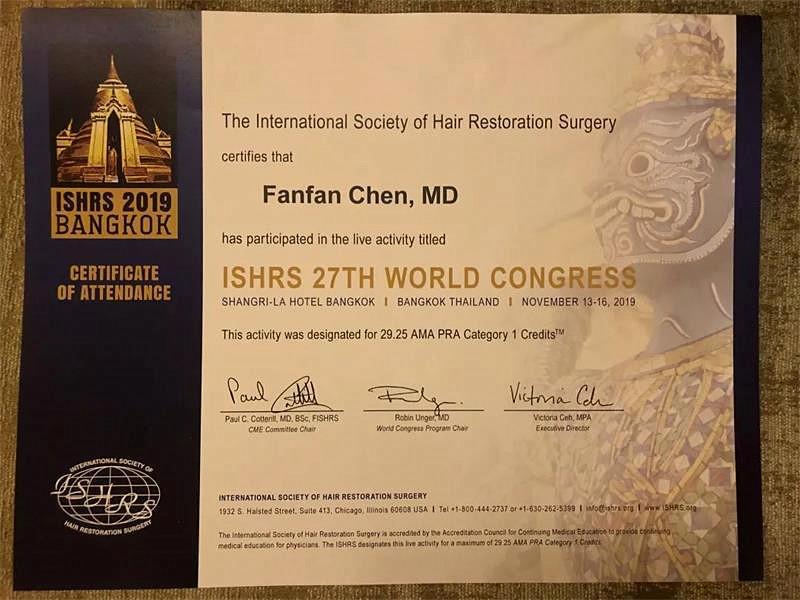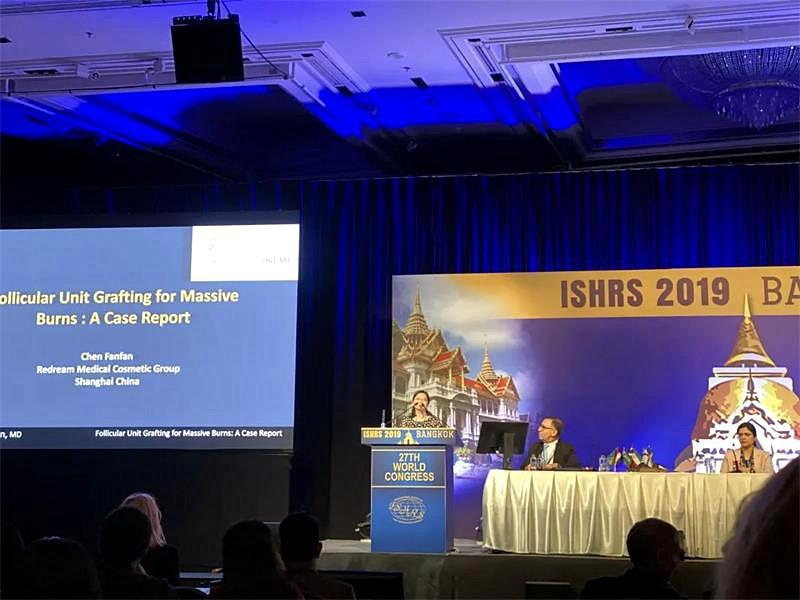 2019年11月中旬,国际毛发移植协会(International Society of Hair Restoration Surgery,ISHRS)第27届世界大会在泰国曼谷召开,薇琳植发集团博士陈凡凡作为ISHRS中国三位发言代表之一,受邀参加该会议。会议上与来自全球70多个国家1100多名植发行业专家交流前沿植发技术,共探全球毛发产业新趋势。