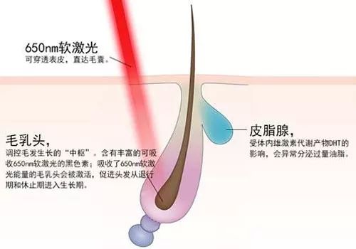 通过波长在650nm的低能量激光对人体的照射,可以对细胞产生一些活性增强和血液循环加快等有利刺激,只需每周戴2-3次即可起到生发作用。