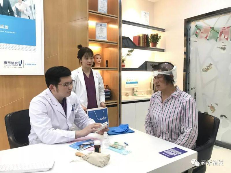 杨女士小的时候脸部、头部大面积烧伤,由于父母走的早,又是在农村医疗条件都很差,伤口没有得到很好的处理,至今都还有大块的烧伤痕迹。杨女士前年鼓起勇气做过一次植发手术,由于疤痕面积太大,只做了局部改善。这次能被公益活动选手杨女士非常高兴,武汉院部徐鲁主任对杨女士的头部进行了周密的分析后,提取了2200单位毛囊,这次手术后疤痕可以实现全部遮盖。
