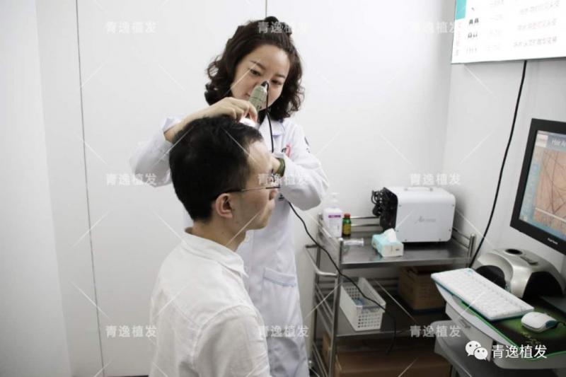 同事肖先生提前一天在院内做了专业的毛囊检测,在面诊之后,毛发移植专家诊断脱发区域的毛囊已经坏死,这时候不论是用药还是洗护,都不会唤醒已经沉睡的毛囊,想要脱发区域重新长出头发,是不大现实的。植发是目前针对肖先生脱发情况最有效快速的方式。